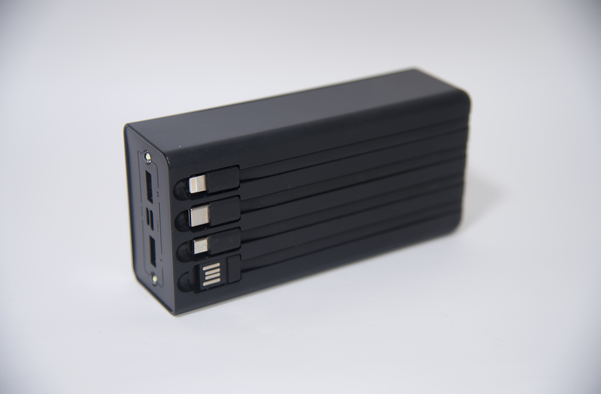 4-in-1 Built-in Cables – Lightning, Type-C, Micro USB & USB output—no extra wires needed